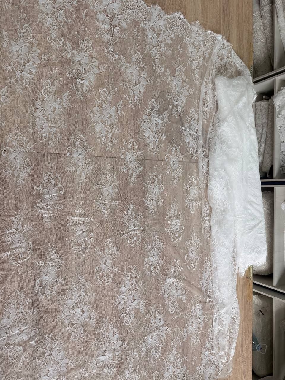 Весільна тканина шантельє не розшите від Sapfir Textile — це вишуканий вибір для створення елегантних та романтичних весільних суконь. Легка, напівпрозора структура тканини додає образу ніжності, підкреслюючи жіночність і витонченість силуету.